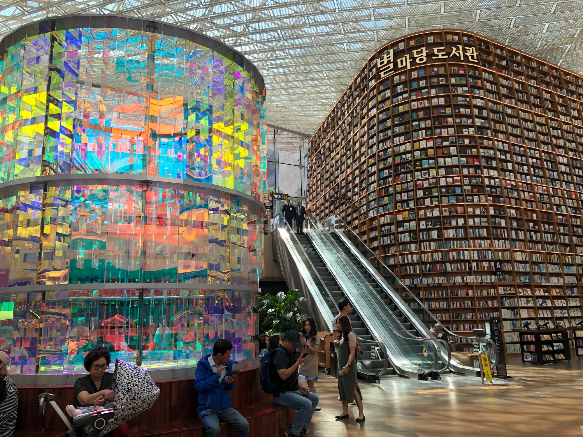 Thư viện Starfield không chỉ đẹp mà còn có thiết kế độc đáo. Nó thật sự rất phù hợp để khách tham gia tour Hàn Quốc chụp cho mình những bức ảnh thật đẹp. Bạn sẽ thấy nhiều người lên xuống thang cuốn nhiều lần chỉ để có cho mình những bức ảnh đẹp nhất. Vì có khá đông người nên nếu bạn muốn có bức ảnh không bị người khác xâm chiếm, bạn sẽ phải kiên nhẫn một chút.
