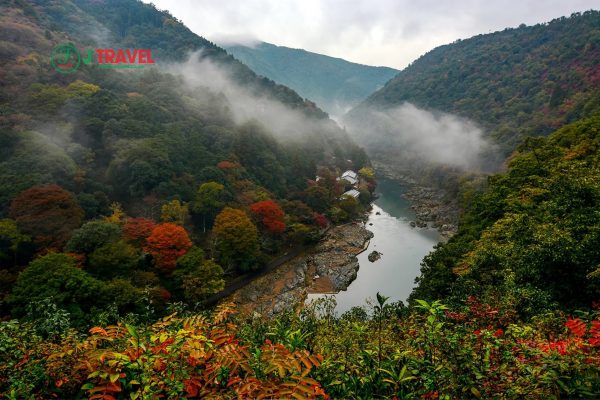 Vào mùa thu, bạn có thể chiêm ngưỡng những tán lá phong lá đỏ và vườn hoa đỗ quyên núi đang chuyển sắc đỏ vàng. Tại khu vực này còn có rừng trúc Sagano, nơi đây đánh giá là khu rừng tuyệt vời nhất Nhật Bản.