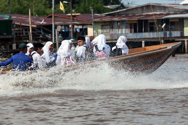 Phương tiện công cộng duy nhất ở làng nước nổi này là “taxi nước” hay thuyền. Đây cũng là phương tiện giao thông chính được dùng trong du lịch. Thuyền được làm bằng một loại gỗ đặc biệt ở địa phương (gỗ meranti merah), có gắn động cơ. Hàng ngày, “taxi nước” đưa đón các công chức vào đất liền làm việc, phục vụ khách du lịch, buôn bán trên sông. Đây là một trong những nét văn hoá rất độc đáo của Brunei.