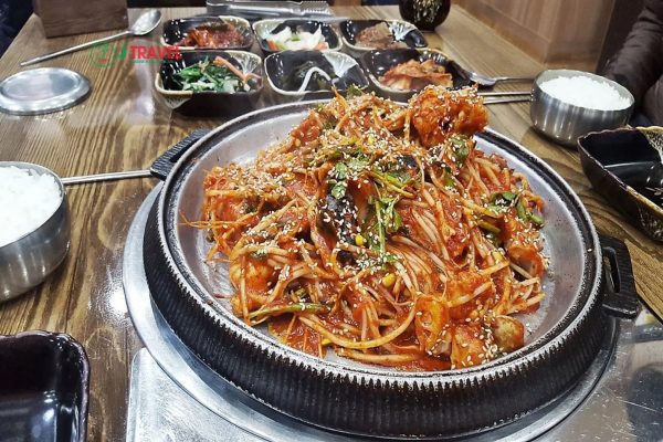 Thêm một món ăn từ cá mà bạn nên thưởng thức khi đến Busan du lịch Hàn Quốc. Đó là cá bùn nước ngọt đặc trưng ở thành phố cảng Busan. Cá bùn được làm sạch rồi ướp gia vị và hầm với giá đỗ, rau củ cải khô, rau khoai lang khô, bắp cải… và một số gia vị khác. Món cá thành phẩm có hương vị ngọt thanh, cay và ngậy.