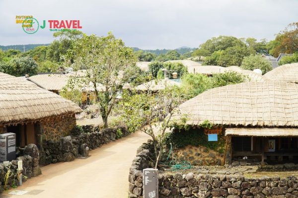 Ai đến du lịch Hàn Quốc với tour đi đảo Jeju sẽ không thể bỏ qua địa điểm nổi tiếng này. Những ngôi nhà ở đây có niên đại hơn 500 tuổi. Đa phần vẫn còn trọn vẹn những nét văn hóa xưa. Ngôi làng này đã từng là bối cảnh cho bộ phim truyền hình quốc dân của Hàn Quốc “Nàng Dae Jang Guem”. Sự ấn tượng của ngôi làng này nằm ở những dãy hàng rào bằng đá được xếp kiên cố quanh nhà. Điển hình cho văn hoá truyền thống thể hiện ở những mái lá đơn sơ.