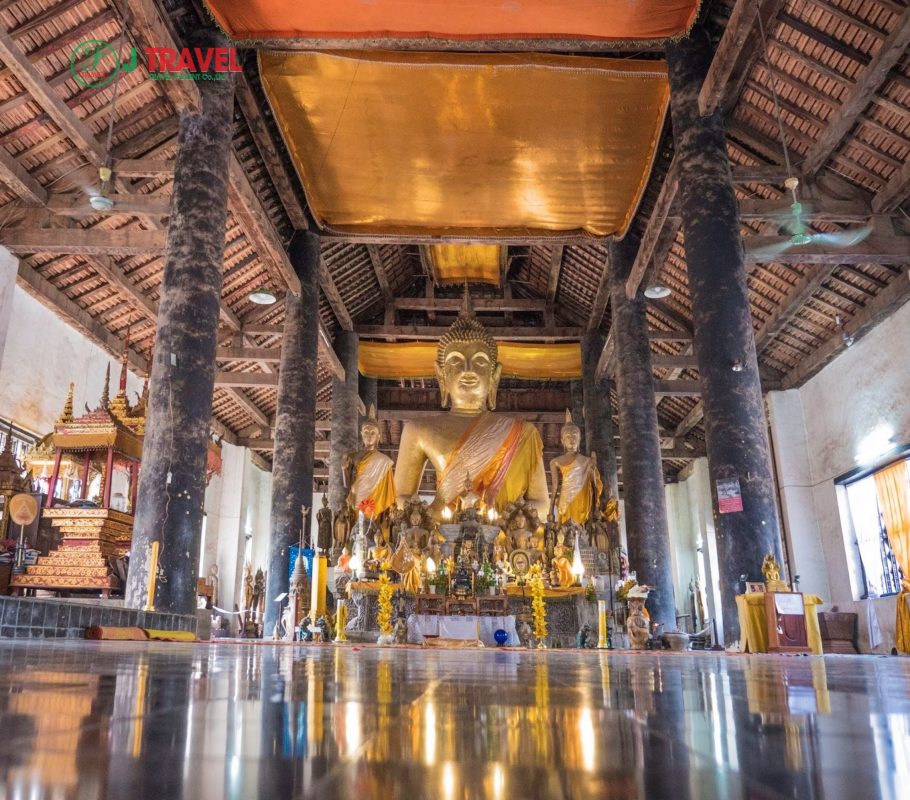 Thêm một ngôi chùa lớn ở Luang Prabang mà bạn không thể bỏ qua khi du lịch Lào là Wat Wisunarat. Chùa được xây dựng năm 1896-1898. Khuôn viên chù khá rộng, phủ đầy cây xanh, tươi mát. Dù kiến trúc có phần đơn giản nhưng phần mái tôn đặc biệt có nhiều chi tiết trang trí rất giá trị. Ngôi chùa đứng sừng sững giữa trời, toát lên vẻ đẹp giản dị và bình thản.