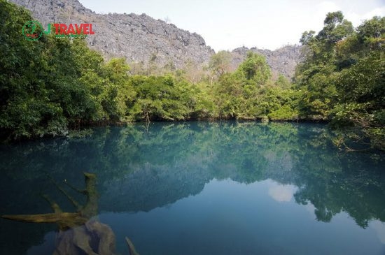 Sở dĩ dòng nước ở đây có màu xanh ngọc bích là do nước hồ xuất phát từ dòng sông ngầm đã được lọc qua những lớp đá vôi nằm ở xung quanh các ngọn núi nên mới có độ trong như vậy.
