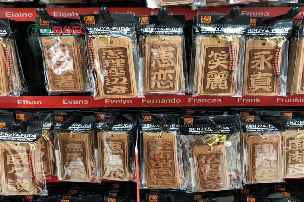 Thêm một sản phẩm độc đáo mà bạn nên mua khi du lịch Nhật Bản đó là dây đeo lưng ấn lệnh Senjafuda. Bạn có thể khắc tên mình lên đó và mua nó làm kỷ niệm một chuyến đi. Tấm thẻ gỗ khắc tên độc đáo được đeo bên hông hoặc dùng làm vật trang trí trong nhà. Đây là đồ dùng khá nổi tiếng và phổ biến ở Nhật. Nó được khá nhiều du khách lựa chọn sau một chuyến du lịch Tokyo.