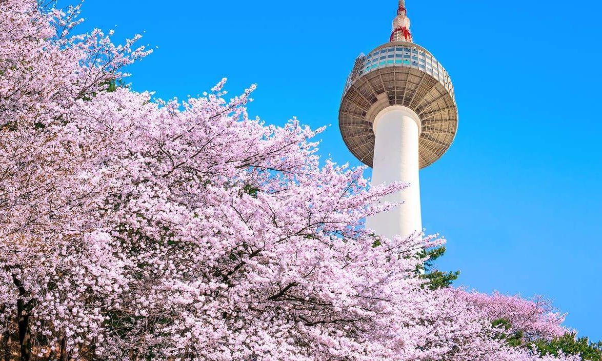 Hoa anh đào rực rỡ tại tháp Namsan khi nắng sớm lan tỏa hơi ấm và một mùa vàng tươi tắn. Đến đây vào giữa tháng 4 hàng năm, bạn sẽ được trải lòng giữa những rừng anh đào mơn mởn sắc hương. Tản bộ dọc theo khuôn viên để ngắm hoa và lên đỉnh tháp để chiêm ngưỡng toàn cảnh thành phố Seoul lấp lánh ánh hồng phai.