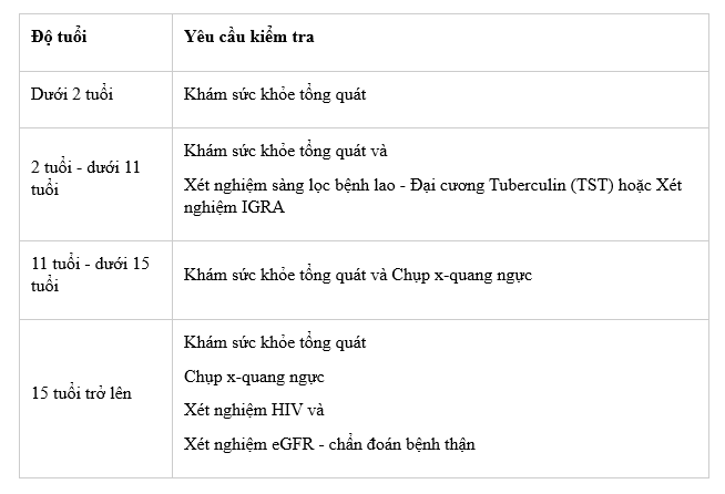 Mỗi đối tượng sẽ có điều kiện về sức khỏe khác nhau, tham khảo bảng sau để biết chính xác mỗi độ tuổi cần khám loại bệnh nào để đảm bảo sức khỏe trước khi xin visa nhập cảnh Úc diện du lịch: