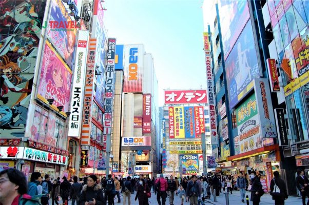 Tạm lánh xa không gian văn hoá truyền thống, J Travel mời bạn du lịch Nhật Bản đến với không gian hiện đại đầy màu sắc tại Akihabara. Đây là khu phố điện tử nổi tiếng hàng đầu Tokyo. Nơi bạn có thể tìm thấy vô số món đồ điện tử từ bình dân đến cao cấp với mức giá phải chăng. Có nhiều mặt hàng điện tử, từ máy vi tính, máy ảnh, tivi, điện thoại di động và các thiết bị điện tử khác được bày bán với giá rẻ.