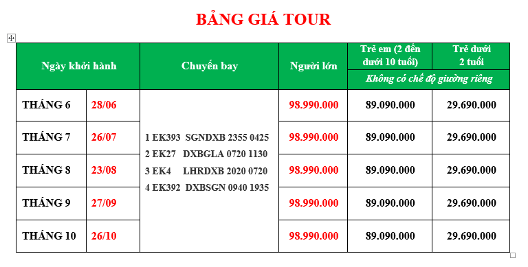 - Điều kiện để khởi hành: do đặc thù là tour ghép khách lẻ, điều kiện để đoàn khởi hành là có ít nhất 10 khách người lớn trở lên. Nếu đoàn phải khởi hành dưới 10 khách, giá tour sẽ được tính lại. Nếu không chấp nhận giá mới, quý khách có thể chuyển sang tour tiếp theo. Hoặc Công Ty sẽ hoàn lại toàn bộ số tiền mà khách đã đóng (sau khi đã trừ lại phí làm visa).