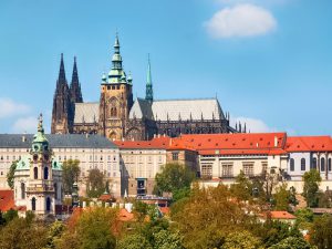 Quý khách tham quan Lâu đài Prague – một trong những lâu đài lớn nhất trên thế giới nằm trọn vẹn trên ngọn đồi nhìn về thành phố bên dưới. Bên trong lâu đài gồm nhiều công trình kiến trúc riêng biệt được xây dựng với nhiều chức năng. Nổi bật nhất là Vladislav Hall thuộc khu Cung điện Hoàng Gia cổ. Đây là sảnh dùng cho các buổi dạ yến với phần mái trần khiến bất cứ du khách nào cũng phải ngỡ ngàng trong lần đầu tiên ngắm nhìn (bao gồm vé tham quan).