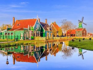 - Làng cối xay gió Zaanse Schans. Quý khách sẽ có cơ hội đắm mình trong không gian yên bình của Khu đồng quê Zaanse Schans, nơi có những ngôi nhà xinh xắn, cổ kính được xây dựng từ thế kỷ 17- 18. Chúng được dời đến từ các vùng lân cận, đặc biệt là từ vùng Zaandam và được phục dựng để trở thành một viện bảo tàng văn hóa sinh động, độc đáo- Nơi tái hiện lại cuộc sống vùng quê Hà Lan xưa với điểm nhấn đặc trưng là những cối xay gió đủ kích thước, màu sắc.