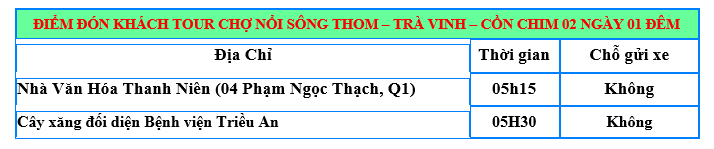 Sáng: Xe và Hướng dẫn viên đón quý khách tại điểm hẹn. Chào mừng các thành viên của đoàn đã tham gia. Xe khởi hành, bắt đầu hành CHỢ NỔI XỨ DỪA – CỒN CHIM – TRÀ VINH 2 NGÀY 1 ĐÊM.