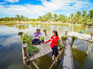 Rời Mỹ Tho, xe đưa Quý khách đến với huyện Mỏ Cày Nam – Bến Tre. Quý khách lên tàu để bắt đầu hành trình khám phá: