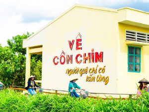 - Chụp hình lưu niệm tại Cổng làng Cồn Chim, nơi có những người dân địa phương cầm sẵn nón lá đang chào đón Quý khách.