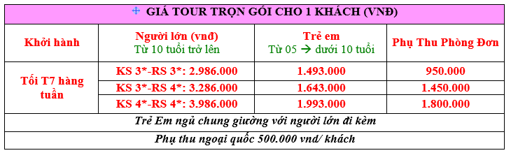 - Từ 10 tuổi trở lên: giá tour như người lớn.