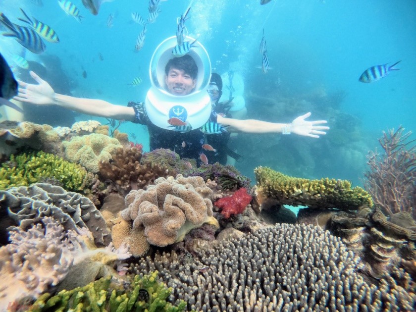 - Tàu câu cá, dụng cụ lặn ngắm san hô, ống thở,..