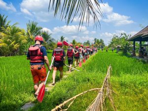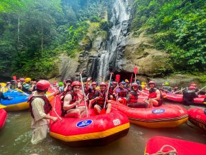 Đoàn khách trải nghiệm chèo thuyền White Rafting tại Bali cùng J Travel