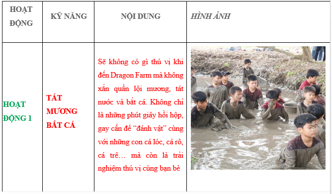 2. Nội dung chương trình trải nghiệm