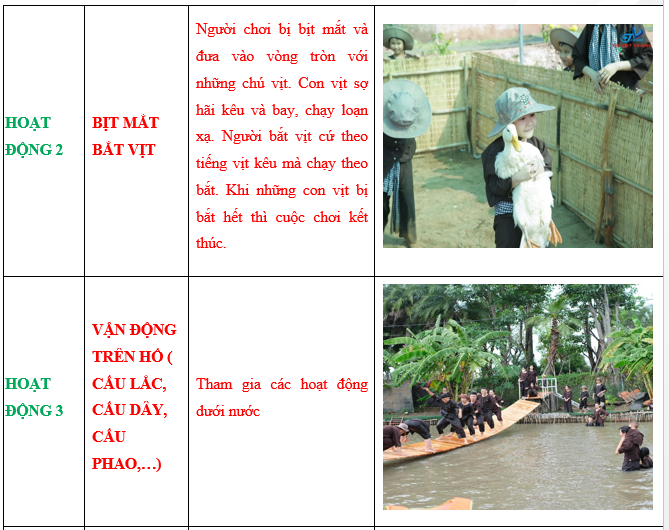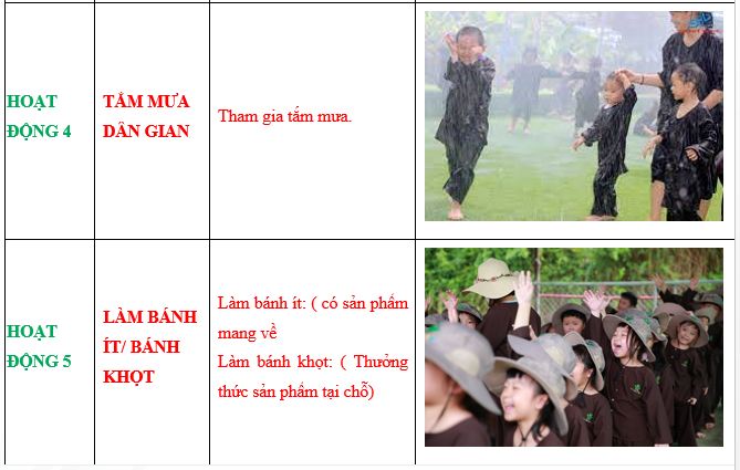 08:30- 11:00 Tham gia trải nghiệm các hoạt động (4 hoạt động)