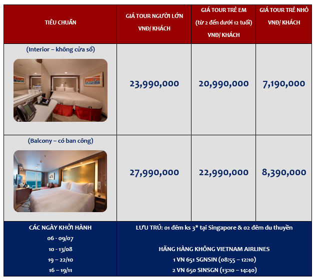 - Tiền tip trên Du thuyền (SGD54 ~1,026,000vnd / 1 khách/ 1 chương trình)