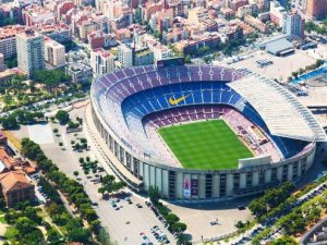 - Sân vận động Camp Nou, sân nhà của đội bóng Barcelona, mệnh danh là thánh đường bóng đá Châu Âu. (chụp ảnh bên ngoài)