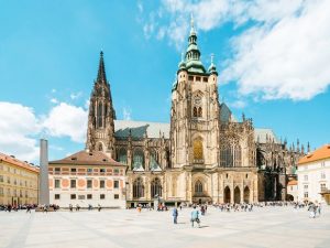 - Quý khách tham quan Lâu đài Prague – một trong những lâu đài lớn nhất trên thế giới nằm trọn vẹn trên ngọn đồi nhìn về thành phố bên dưới. Bên trong lâu đài gồm nhiều công trình kiến trúc riêng biệt được xây dựng với nhiều chức năng. Nổi bật nhất là Vladislav Hall thuộc khu Cung điện Hoàng Gia cổ. Đây là sảnh dùng cho các buổi dạ yến với phần mái trần khiến bất cứ du khách nào cũng phải ngỡ ngàng trong lần đầu tiên ngắm nhìn (Bao gồm vé tham quan).