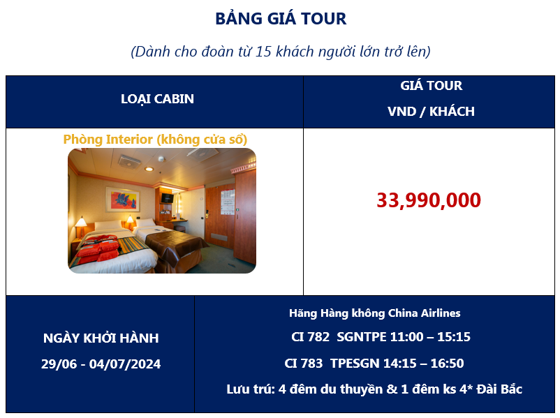 NGÀY KHỞI HÀNH DỰ KIẾN: 29/06 – 04/07/2024
