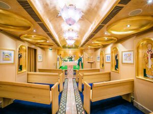 - Chapel: Mang lại một không gian tĩnh lặng và thiêng liêng, giúp du khách có thể tìm thấy sự bình an và thoải mái trong tâm hồn giữa hành trình trên biển. Đây là nơi lý tưởng để thực hành các hoạt động tâm linh, tham gia các nghi lễ tôn giáo, hoặc đơn giản là tìm một khoảng yên bình để suy ngẫm và nghỉ ngơi.