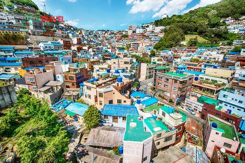 - Làng bích họa Gamchoen Village: từng là một ngôi làng cổ trên đồi, nhìn hướng ra biển với những căn nhà cũ kỹ, xuống cấp. Năm 2009 ngôi làng được những nghệ sĩ phục dựng bằng những sắc màu đầy tính nghệ thuật. Ngôi làng tranh tường bắt đầu được nhiều người biết tới với những khung hình rất riêng, không lẫn đi đâu được. Gamcheon được mệnh danh là Santorini của xứ sở Kim Chi.
