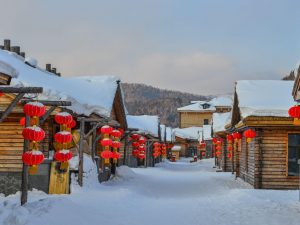 Buổi sáng: Sau khi dùng điểm tâm tại khách sạn, xe đưa Quý khách di chuyển đến Làng tuyết cổ tích – nơi đây là bối cảnh chính của nhiều bộ phim truyền hình, điện ảnh nổi tiếng như: She’s My Ex-wife, Cool In Summer And Warm In Winter, Heilong Town And The Snowstorm, đồng thời cũng là nơi diễn ra chương trình thực tế nổi tiếng “Bố ơi mình đi đâu thế” ở Trung Quốc. Với mùa đông kéo dài, lượng tuyết phủ suốt 7 tháng từ tháng 10 đến tháng 5 năm sau, độ dày đạt từ 2-3m, toàn bộ ngôi làng được nhuộm bởi màu tuyết trắng, những hạt tuyết mịn màng phủ đầy trên mái nhà như trong truyện cổ tích. Khi màn đêm buông xuống, dưới ánh đèn vàng làng tuyết càng trở nên lung linh huyền ảo.