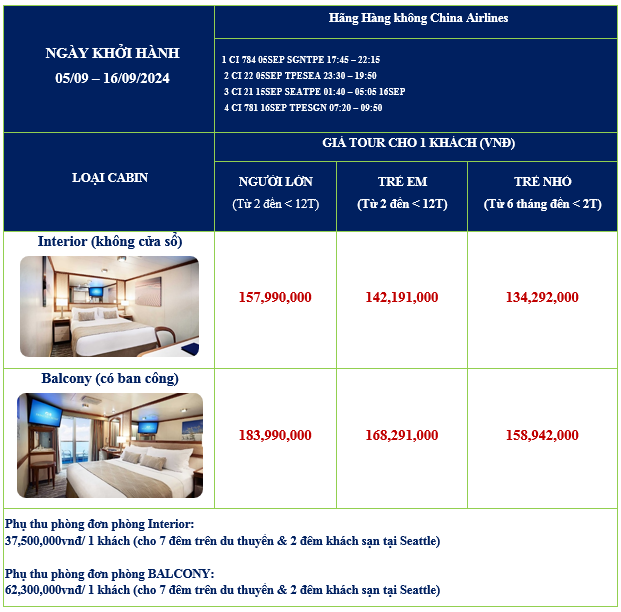 KHỞI HÀNH DỰ KIẾN: 05/09 – 16/09/2024