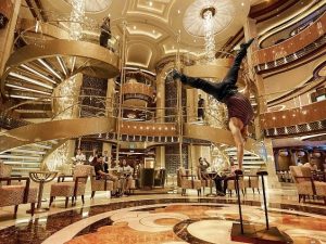 - Bên cạnh các hoạt động vui chơi giải trí sôi dộng, hệ thống nhà hàng 5* sao trên du thuyền sẽ không làm thực khách thất vọng, với những thương hiệu nổi tiếng cùng đa dạng hương vị ẩm thực thế giới như Sabatini’s Italian Trattori, Crown Grill, Sterling Steakhouse, Bistro Sur La Mer và khu ẩm thực World Fresh Marketplace.