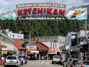- Ketchikan là một đảo nhỏ với 8,000 dân, nổi tiếng với cá hồi, tự phong là thủ đô cá hồi của thế giới. Mùa sinh đẻ cá hồi nhẩy nước nhiều đến nỗi thu hút cả trăm chim ó trọc đầu đến ăn (bald eagle, biểu tượng của nước Mỹ), và nhiều đến nỗi dân trên đảo bắt hoài không hết.