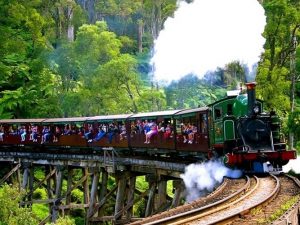 - Xe lửa hơi nước: Puffing Billy – Hành trình trên tàu Puffing Billy sẽ đưa bạn đi qua dãy Dandenong xanh mướt đẹp huyền diệu của nước Úc trên một đường tàu hơi nước được bảo tồn cực kỳ tốt. Là cơ hội tuyệt vời cho bạn một chuyến đi thư giãn và hít thở bầu không khí trong lành khi tàu chạy qua khu rừng nhiệt đới ôn hòa.