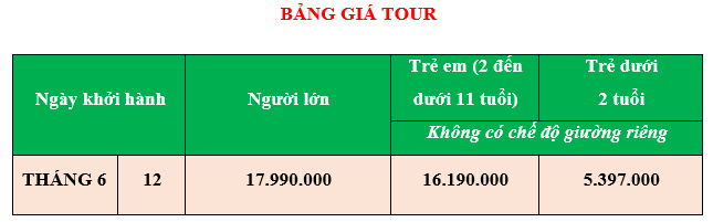 - Giá tour không bao gồm chi phí visa tái nhập vào Việt Nam đối với Việt kiều & Ngoại kiều.