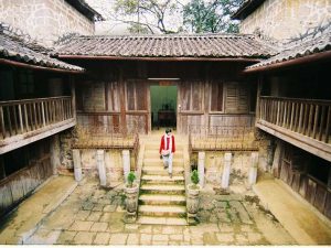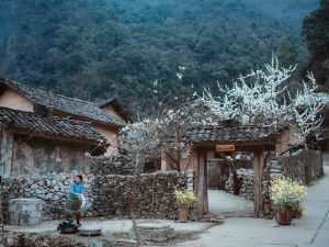 Phố Cáo với những ngôi nhà đặc trưng của người H’mông bởi những hàng rào đá cung quanh nhà.