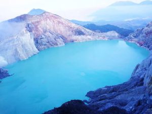 - Kawah IJen – là hồ Axit lớn nhất thế giới, với bán kính 361m, diện tích bề mặt là 410.000m2, sâu 200m và có thể tích 36 triệu m3. Ban đêm, hồ này phát ra ánh sáng xanh bí ẩn do nồng độ axit cao và kim loại hòa tan. Màu xanh ngọc bích của hồ Kawah Ijen được tạo ra từ lượng magma lớn nằm sâu bên dưới hồ.
