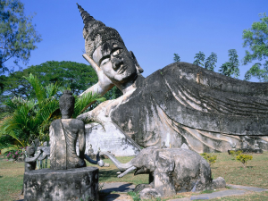- Vườn Tượng Phật (Buddha Park) với hàng trăm pho tượng lớn nhỏ bên Sông Mekong.