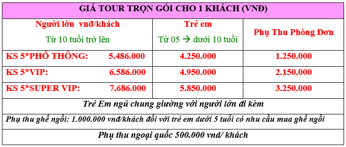 GIÁ TOUR BAO GỒM:
