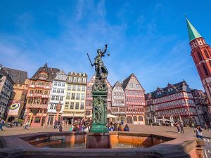 - ROMERBERG SQUARE – quảng trường trung tâm của Frankfurt, nơi tụ họp của dân địa phương trong các lễ hội đặc biệt là lễ giáng sinh. Khu vực này nổi bật với 11 tòa nhà cũ được xây dựng từ thế kỷ 15 – thế kỷ 18 bao gồm Old Town Hall với Imperial Hall tạo nên một không gian lộng lẫy.