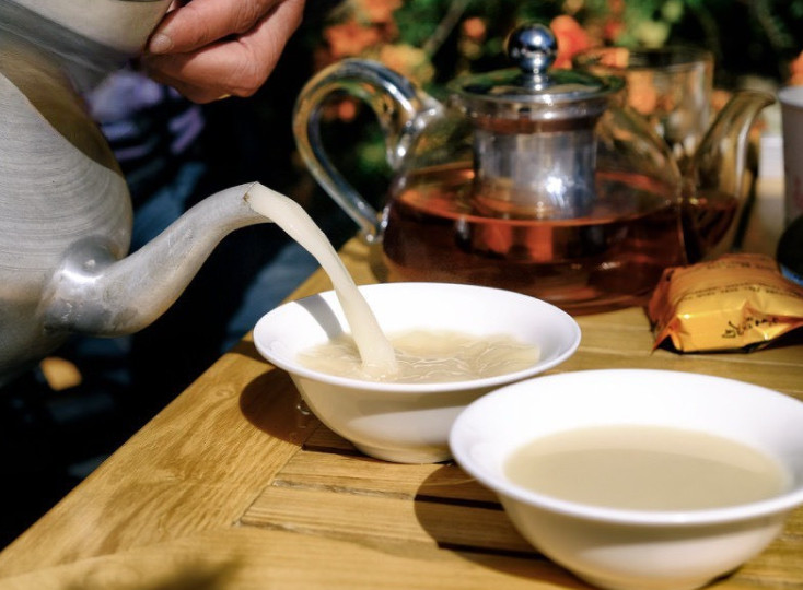 Trà bơ, giống như bánh bao nhồi Lệ Giang, có hai vị mặn và ngọt. Nó được làm từ bơ, trứng, muối, hạt gai dầu, đậu phộng, và quả óc chó, được đựng trong một chiếc thùng gỗ đựng nước trà; rồi dùng que khuấy liên tục.