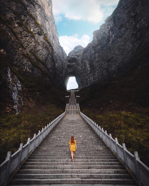 Nếu bạn muốn thử thách bản thân bằng một chuyến du lịch mạo hiểm thì nên một lần thử chinh phục cổng trời Thiên Môn Sơn. Bạn có thể tự mình lái xe máy qua những cung đường đèo cheo leo, sau đó leo thêm 999 bậc thang để lên đến “cổng trời”. Tuy nhiên, nếu không tự tin vào khả năng cầm lái của mình, bạn có thể di chuyển bằng cáp treo với 98 cabin có tổng chiều dài lên tới 7.455 m.
