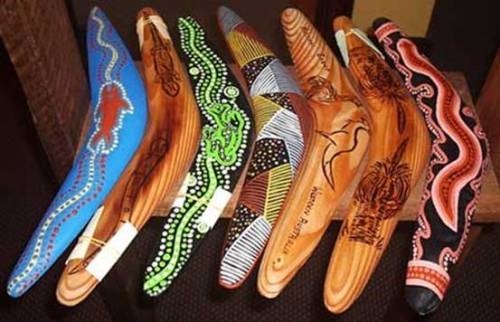 Tài năng chạm trổ của nghệ sĩ thổ dân thể hiện qua cách trang trí những khiên mộc, những chiếc boomerang(boomerang: vũ khí quăng ném thông dụng của thổ dân Australia, làm bằng thanh gỗ cứng, dẹt, hình chữ V doãng, nếu không trúng con mồi lại tự bay về điểm xuất phát), những thanh lao nhọn, cũng như trên các đồ thờ bằng gỗ, bằng đá, hoặc hình trang trí thân cây, vách đá, mặt đất nơi bãi tế lễ. Tại vùng bờ biển phía đông và đông nam, ta gặp những hình phức tạp cực đẹp khắc lên khiên mộc gỗ. Vùng tây bắc có những trang trí tinh xảo trên các tấm gỗ thờ và những họa tiết khắc trên vỏ trai, với nhiều hình triện hồi văn gấp khúc, giống như trên bình gốm Hi Lạp thời cổ. Tại vùng hoang mạc ở trung tâm lục địa, hình khắc trên các đồ vật tế lễ có phần đơn giản hơn. Đó là những mô típ giản dị nhưng đầy tính trực cảm hồn nhiên, không chút gò bó.